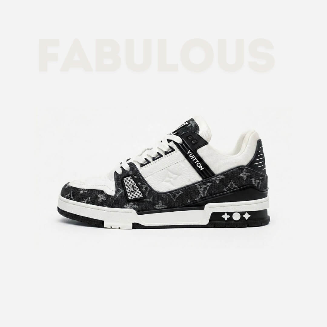 Step into a world of texture and style with the Louis Vuitton Shoes Monogram Denim. This premium trainer features a high-quality white leather base accented with black Monogram denim overlays. Combining street fashion with high-end luxury, these sneakers offer a unique tactile feel and a bold aesthetic. Equipped with a cushioned technical outsole and finished with iconic LV branding on the tongue and side.