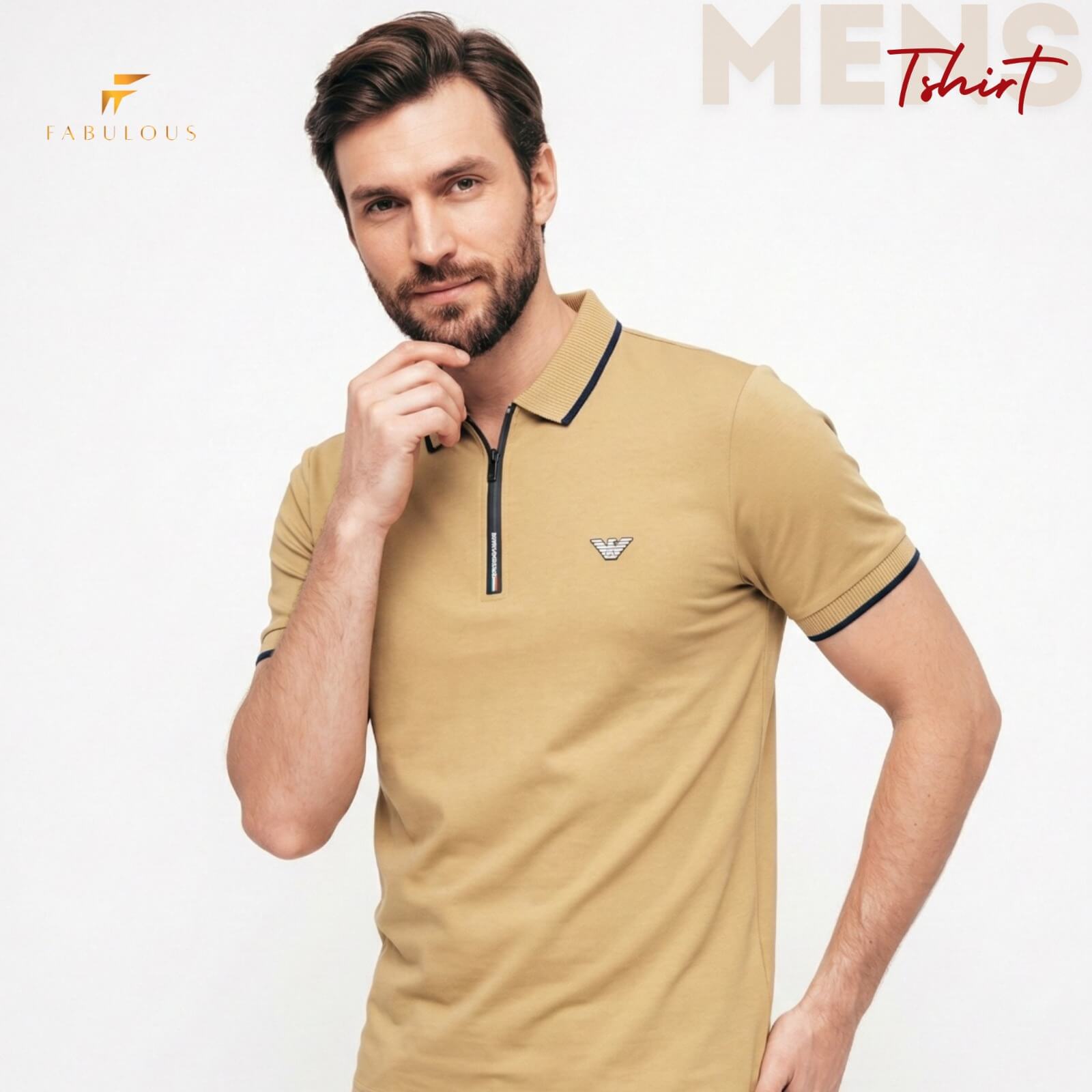 Men’s Eid Collection – Step into modern style and premium comfort with our elegant Zipper Polo T-Shirt | Order directly on WhatsApp for quick delivery!