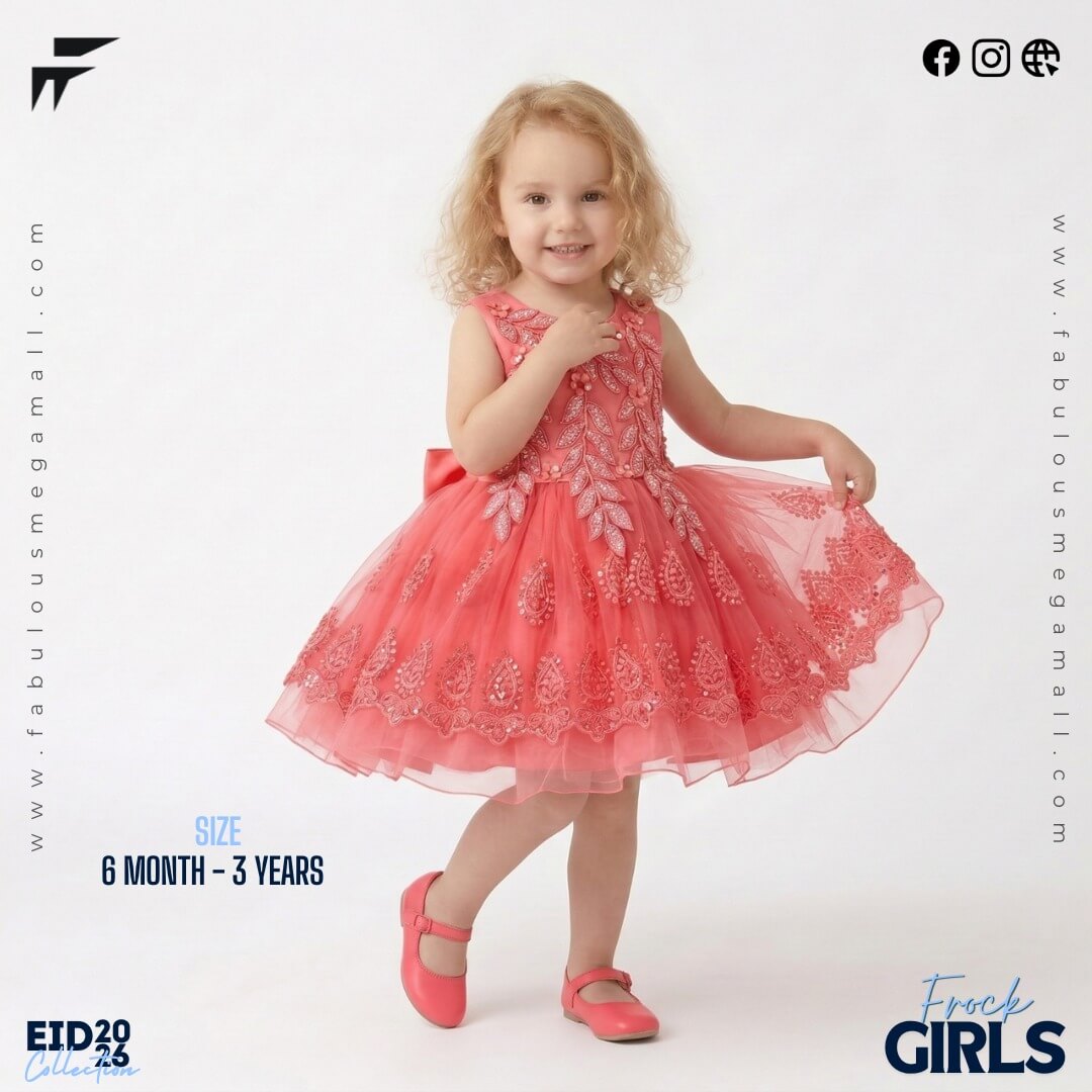 Celebrate this festive season by dressing your little princess in our gorgeous Premium Baby Girls Frock. Specially designed for toddlers and little girls (Ages 6 Months to 3 Years), these beautiful dresses perfectly combine high-end festive elegance with the ultimate all-day comfort your baby needs. Whether it is for Eid day celebrations, a special birthday party, or a memorable family gathering, this outfit ensures she looks absolutely stunning like a little princess.